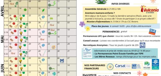 Voici les actus de ces 3 prochains mois ! Le centre tourne au ralenti pendant l’été, horaires adaptés, ateliers décalés ou annulés, etc. Reprise normale des ateliers et permanences dès...